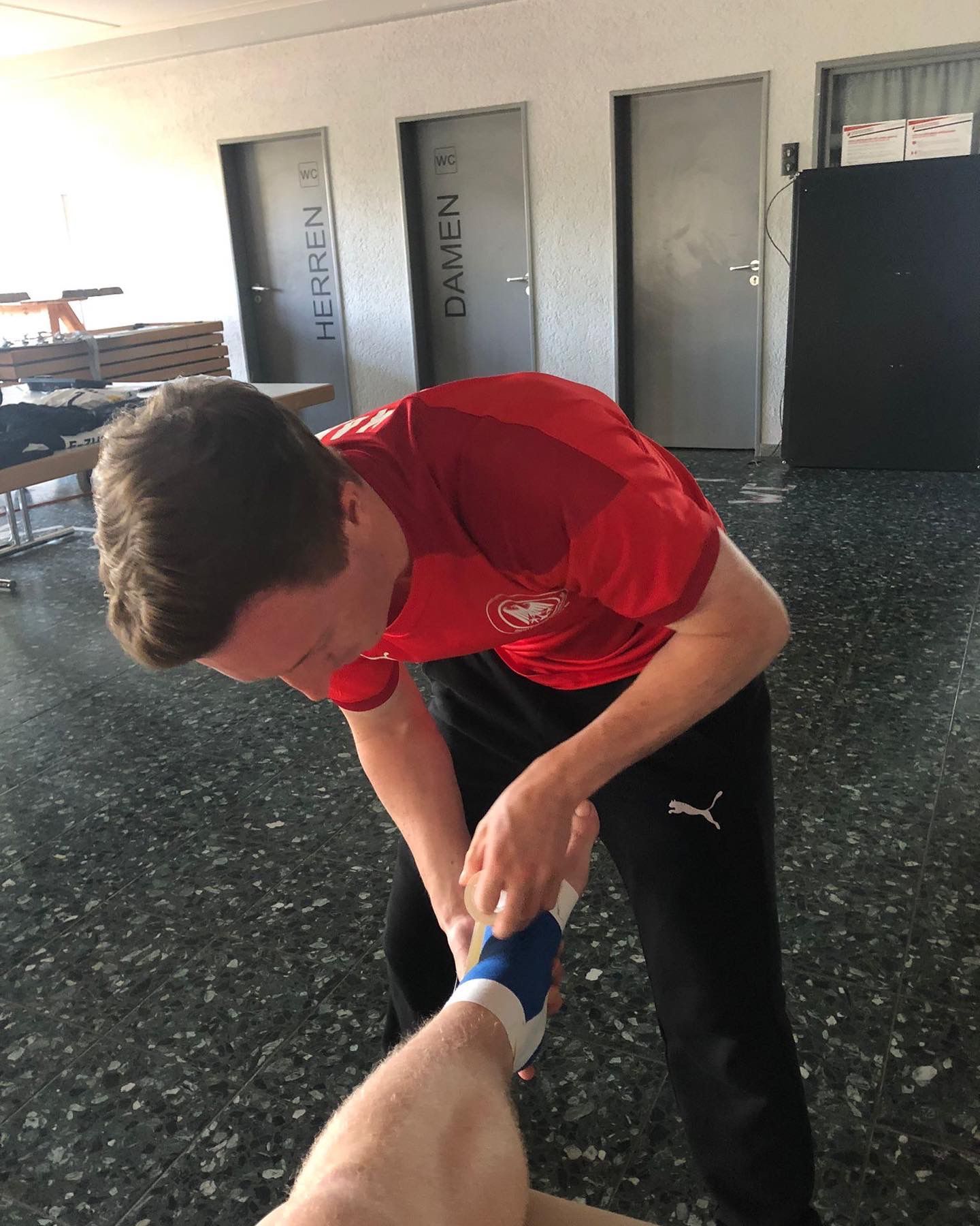 Die deutsche Nationalmannschaft bereitete sich nach zwei Länderspielen gegen Frankreich auf die U18-Europameisterschaft in Montenegro vor. Zwischen Sonntag und Dienstag absolvierte das Team von Bundestrainer Erik Wudtke in Kaiserau den finalen, vorbereitenden Kurzlehrgang mit drei Handballeinheiten und einer Krafteinheit. Für die nötige physiotherapeutische Betreuung sorgte unser Therapeut Maximilian Hackl. Am Dienstag brach das Team dann nach Podgorica auf, wo es am Donnerstag, 4. August, ihr erstes Vorrundenspiel gegen Ungarn bestreitet. Wir drücken die Daumen!