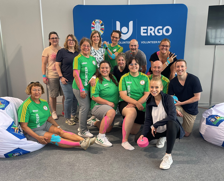 Am vergangenen Wochenende gaben wir bereits das zweite Mal einen Taping-Kurs im Rahmen des Volunteer-Programms der UEFA EURO 2024. Unter der Anleitung unseres Physiotherapeuten Maxi lernten die Teilnehmer*innen, die sich bei dieser Fußball-EM freiwillig als Helfer*innen engagieren, nicht nur die Arten und Anwendungsbereiche von Tapes kennen, sondern konnten auch die verschiedenen Anlagen von Kinesiotapes direkt selbst ausprobieren. Maxi stand dabei mit Tipps und weiteren Erklärungen zur Seite und unsere Teamassistentin Sanna kümmerte sich um weiterführende Fragen der Teilnehmer*innen zur Physiotherapie und Osteopathie. In Sachen Taping-Material waren wir bestens von unserem Partner Kanzlsperger ausgestattet. Fotos: Fit Im Tal